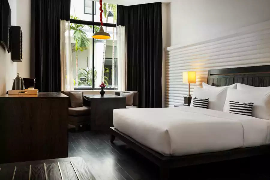 公共空间带着柔和的高棉艺术气息,泳池区精致高级,房间现代舒适,酒店位置极佳,靠近酒吧街与博物馆区,步行5分钟就能逛到市中心,15-20分钟车程即达吴哥窟建筑群,适合行程丰富、想节奏轻松的旅客。