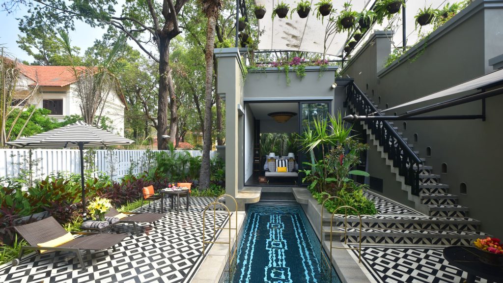 酒店本身坐落在暹粒的法国区,周围绿树成荫环境清幽,距离河流也不过几步之遥。从初期的18间客房小旅馆到如今的奢华泳池别墅度假酒店,多位合伙人和Bill Bensley的加入设计功不可没。