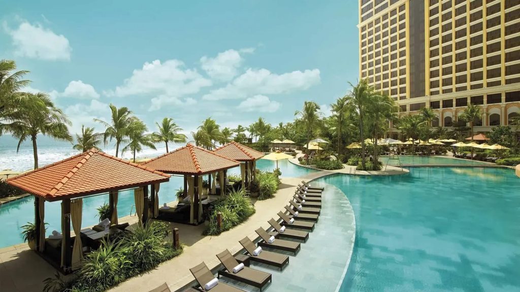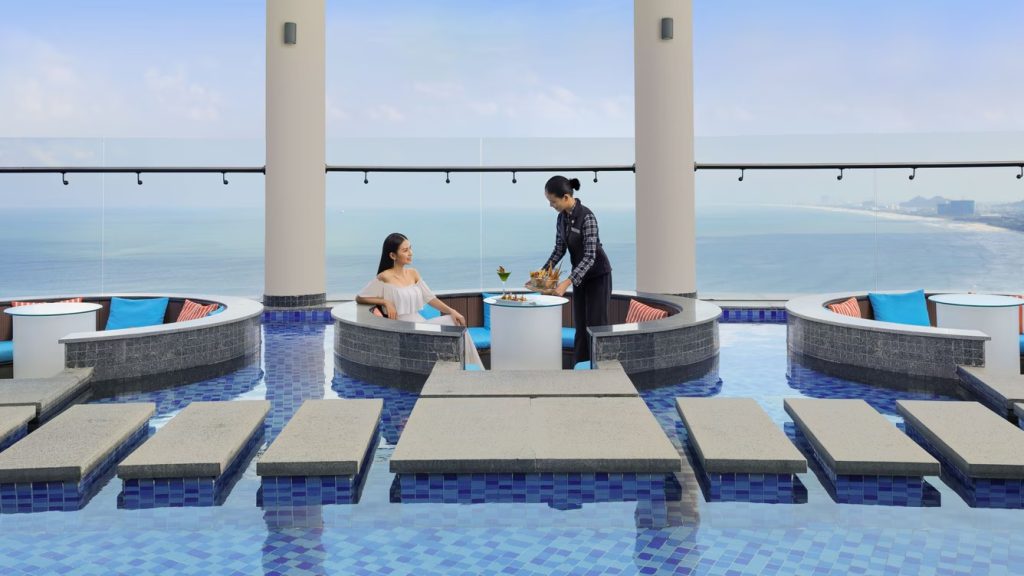 酒店拥有全景海景客房,推窗即可拥抱碧海蓝天与椰林树影,清晨能伴着海浪声醒来,傍晚可步行至海滩旁的海鲜排档,品尝刚捕捞上岸的鲜活海味。酒店配备恒温泳池、SPA 中心及融合越南风味的特色餐厅,既能满足家庭出游的舒适需求,也能为情侣打造浪漫度假氛围,在繁华与静谧间,尽享岘港的热带治愈时光。