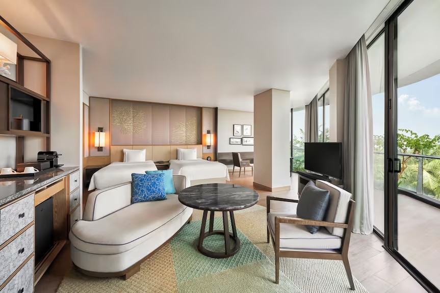岘港喜来登福朋酒店紧邻城市主干道,距离会安古城开车可达,是深度打卡岘港周边的绝佳落脚点。酒店设计融入越南竹编、蜡染等本土工艺元素,客房宽敞明亮,配备柔软睡床与观景阳台,推窗可见热带绿植相映成趣。